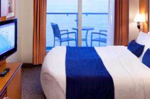 Two twin beds (can convert into queen-size), sitting area (some with sofa bed), private balcony, mini bar, private bathroom, vanity, hair-dryer, closed-circuit TV and phone. Rates vary from deck to deck. Also referred to as Superior Ocean View Stateroom with Balcony. (179 sq. ft., balcony 41 sq. ft.)