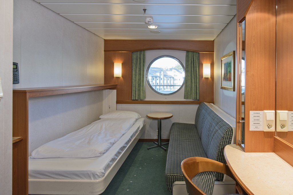 MS Trollfjord features modern comfort and facilities throughout. The ship hosts its own expedition team who present interesting∘ lectures both inside and out on deck. Have fun learning about the nature, wildlife, culture and history you see along the way. Topics depend on the season and where we sail in. MS Trollfjord's large, two-storey panorama lounge above the bow features wall-to-wall glass, allowing in lots of natural light and providing∘ extraordinary views of the passing scenery. The ship's sun deck and Jacuzzi are found on Deck 9. MS Trollfjord also exhibits original paintings that∘ were once aboard the old Hurtigruten ship, MS Harald Jarl.